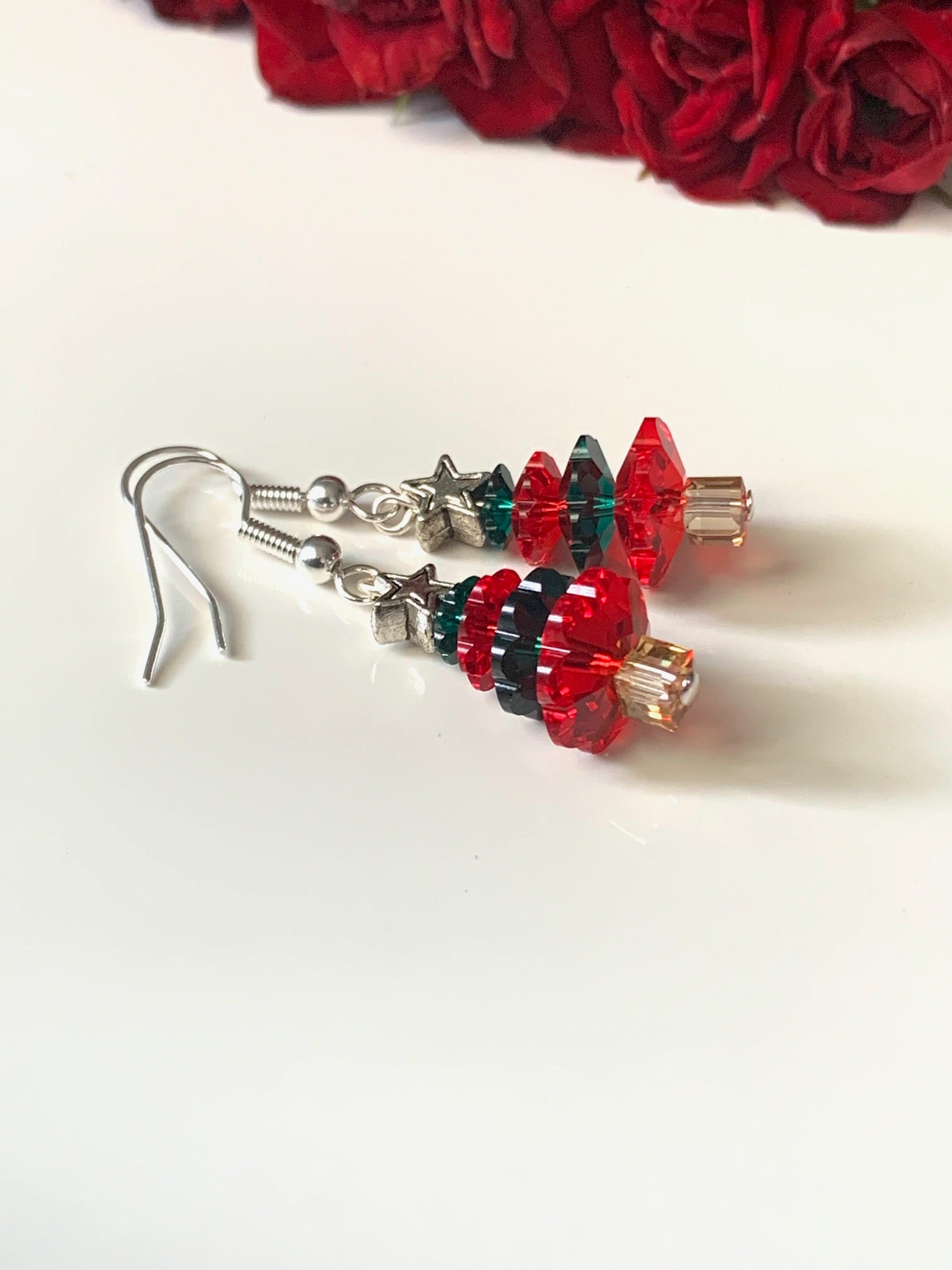 Available in various Christmas colour combinations with a Golden Shadow Swarovski® crystal trunk. Suspended on hypoallergenic surgical steel earring hooks.
